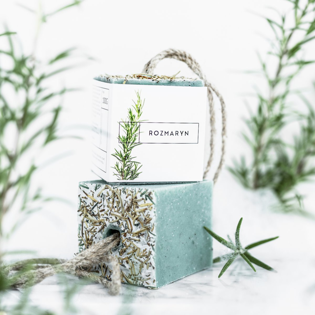 Naturalne, ręcznie wytwarzane w niewielkich partiach wegańskie mydło z błękitną glinką kambryjską i rozmarynowym olejkiem eterycznym.