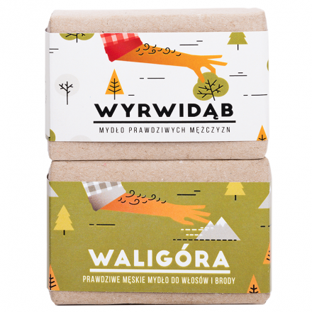 | INCI : | Mydło "Wyrwidąb": Sodium Cocoate, Sodium Shea Butterate, Sodium Olivate, Sodium Cocoa Butterate, Sodium Laurate, Glycerin, Montmorillonite Clay, Activated Charcoal, Pinus Sylvestris (Pine) Oil, Citrus Limon Peel Oil, Rosmarinus Officinalis Leaf Oil, Limonene*, Citral* Mydło "Waligóra": Sodium Cocoate, Sodium Shea Butterate, Sodium Olivate, Sodium Castorate, Glycerin, Pinus Sylvestris (Pine) Oil, Cl 75120, Mentha Piperita Oil, Lavandula Angustifolia Oil, Linalool*, Limonene* *Składowa naturalnego olejku eterycznego |