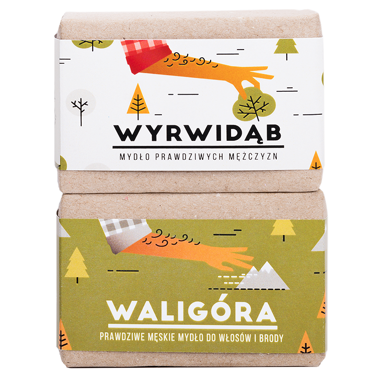 | Skład : | Mydło "Wyrwidąb": Zmydlone: olej kokosowy, masło shea, oliwa z oliwek, woda, masło kakaowe, olej laurowy, glinka zielona, węgiel aktywny, olejek sosnowy, olejek cytrynowy, olejek rozmarynowy Mydło "Waligóra": Zmydlone: olej kokosowy, masło shea, woda, oliwa z oliwek, olej rycynowy, olejek sosnowy, olejek z mięty pieprzowej, olejek lawendowy, barwnik annato |
