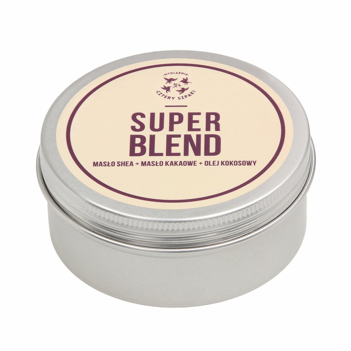 Masło Super Blend to kompozycja, w skład której wchodzą: nierafinowane masło Shea, nierafinowane masło kakaowe i nierafinowany olej kokosowy. Tylko tyle i aż tyle - proste, a jednocześnie naładowane dobrem połączenie najwspanialszych, dobroczynnych olejów roślinnych.